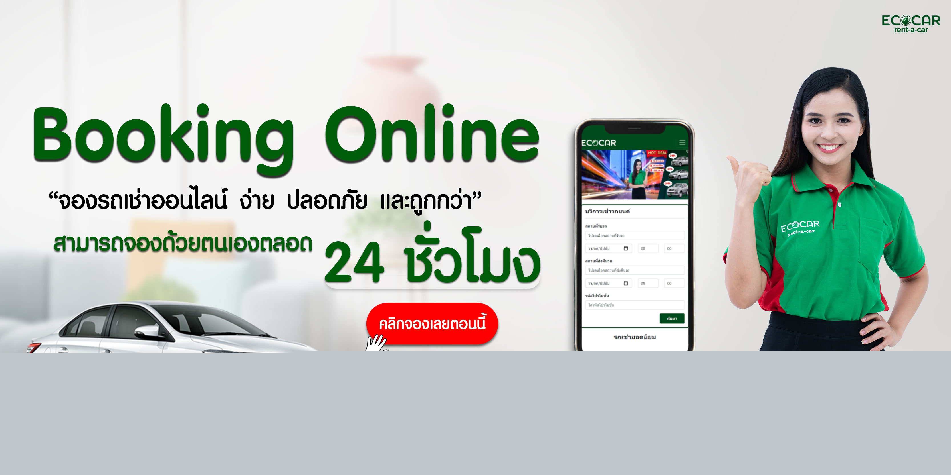 ถ้ายังไม่แน่ใจว่าจะซื้อรถไฟฟ้าดีไหม การเริ่มจากเช่ารถไฟฟ้าเป็นวิธีที่คุ้มและปลอดภัย โดยเฉพาะบริการจาก ECOCAR RENT-A-CAR ที่มีประสบการณ์ให้บริการมากกว่า 13 ปี รถทุกคันสภาพดี อายุใช้งานน้อย มีให้เลือกหลายรุ่นและขับได้ทั่วไทยแบบไม่จำกัดระยะทาง พร้อมประกันชั้นหนึ่งให้ทุกคัน