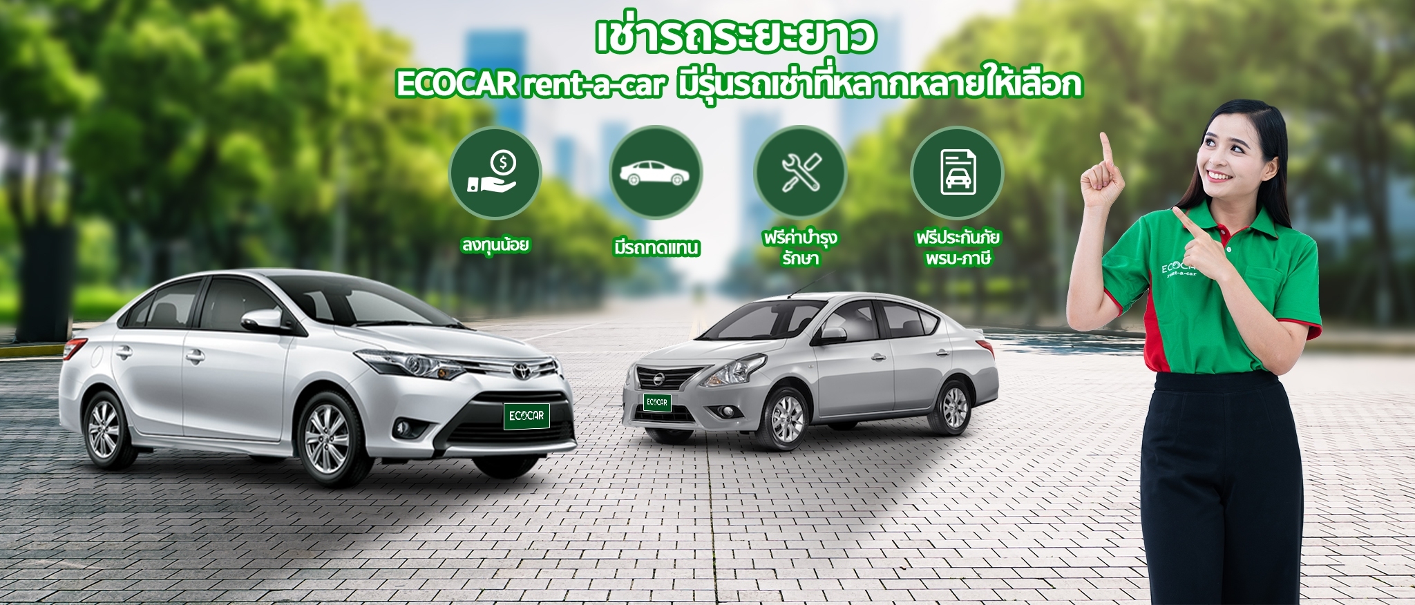 สำหรับใครที่กำลังมองหารถเช่าเก๋งไว้ใช้งาน จะเป็นการเดินทางท่องเที่ยวหรือเช่ารถระยะยาวเพื่อใช้ทำงาน การเลือกบริษัทรถเช่าที่เชื่อถือได้เป็นเรื่องสำคัญมากครับ อย่างที่ ECOCAR rent-a-car เขามีประสบการณ์ดูแลลูกค้ามานานกว่า 10 ปี มีรถยนต์คุณภาพดีให้เลือกหลายร้อยคันจาก 6 สาขาทั่วประเทศ ที่สำคัญคือรถทุกคันอายุการใช้งานน้อย แถมยังมีประกันภัยชั้นหนึ่งและเติมน้ำมันให้เต็มถังตั้งแต่วันแรกที่รับรถ จะขับไปไหนทั่วไทยก็ทำได้แบบไม่จำกัดระยะทางเลย