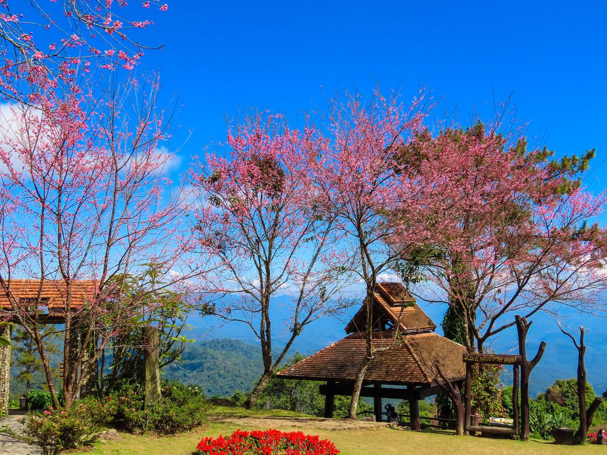 หากคุณเดินทางมาในช่วงเดือนมกราคมถึงกุมภาพันธ์ คุณจะได้เห็นดอกนางพญาเสือโคร่งสีชมพูสะพรั่งไปทั่วบริเวณ เพิ่มความโรแมนติกให้กับทริปครอบครัวหรือคนรักได้เป็นอย่างดี